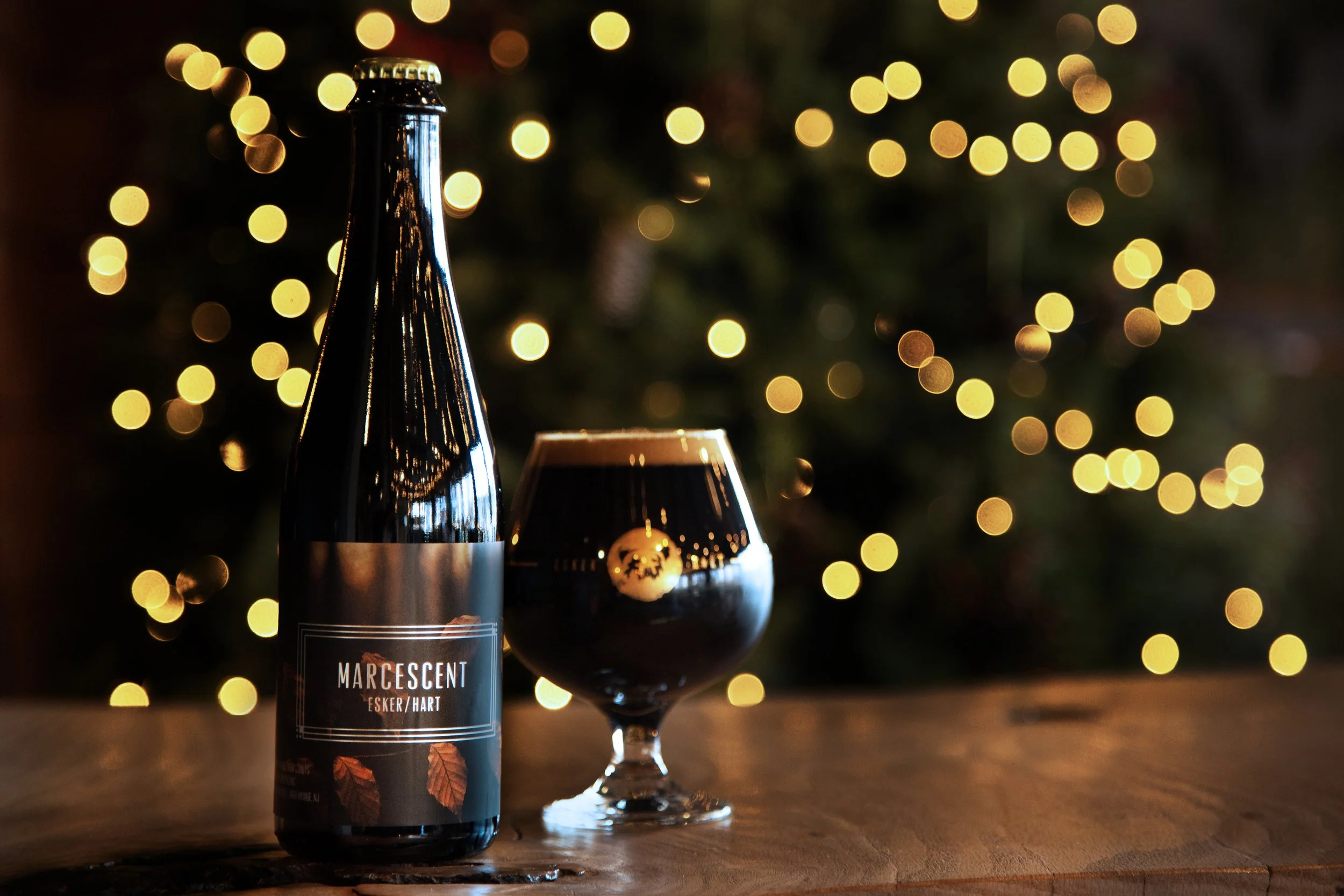 Fresh and barrel blended imperial stout conditioned on Tanzania, Madagascar, and Ugandan vanilla beans, maple syrup, and pecans. We brewed a half batch of heavily wheated imperial stout and blended it with a handful of small format bourbon and rye whiskey barrels from Kings County Distillery which have been holding some of our first stouts made here for about 12-14 months. We’re getting big fudge brownie, black and white cookie, marshmallow, roasted malt and a maple oakiness. As Marcescent begins to warm, we’re getting big additions of marzipan, dark cherry, and the bourbon/rye notes definitely start to shine.